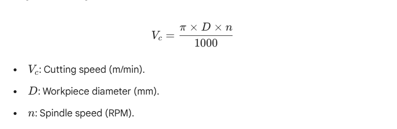 To achieve the precision defined in the program, operators must calculate the optimal cutting speed (Vc) using the following formula: